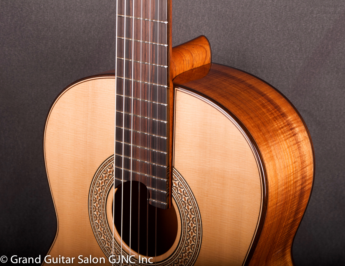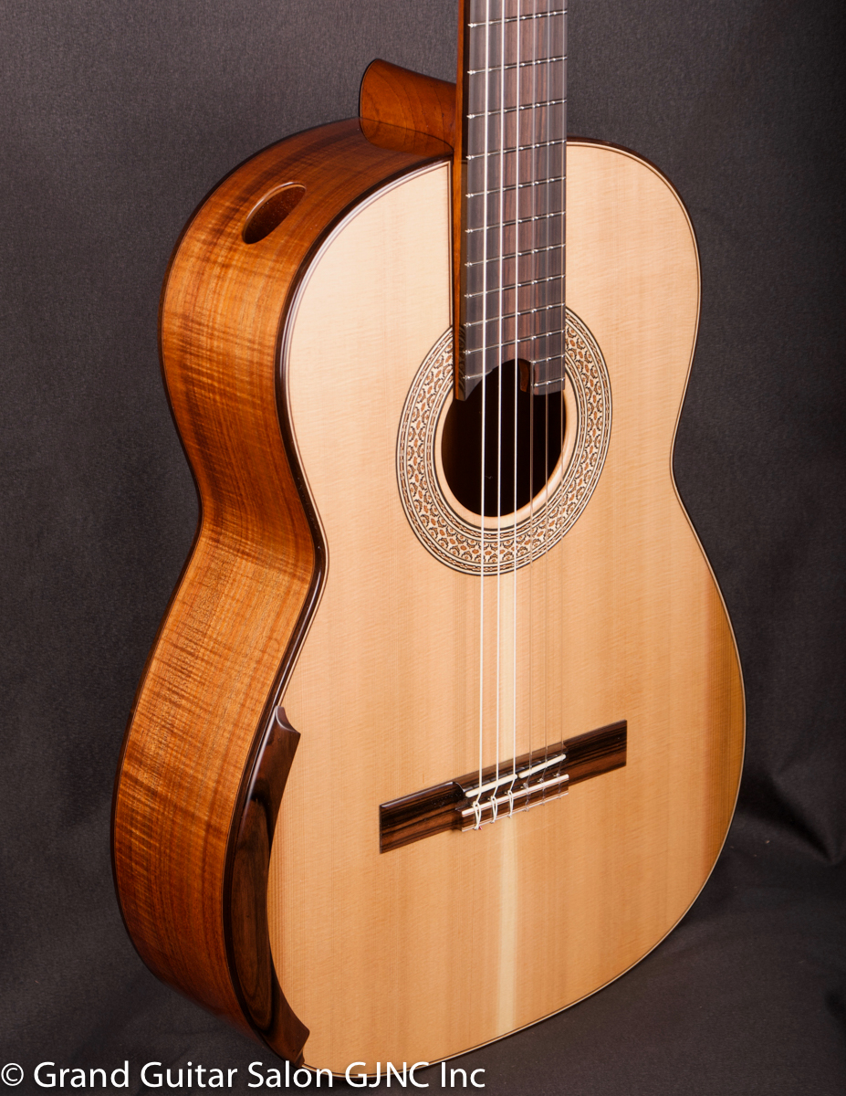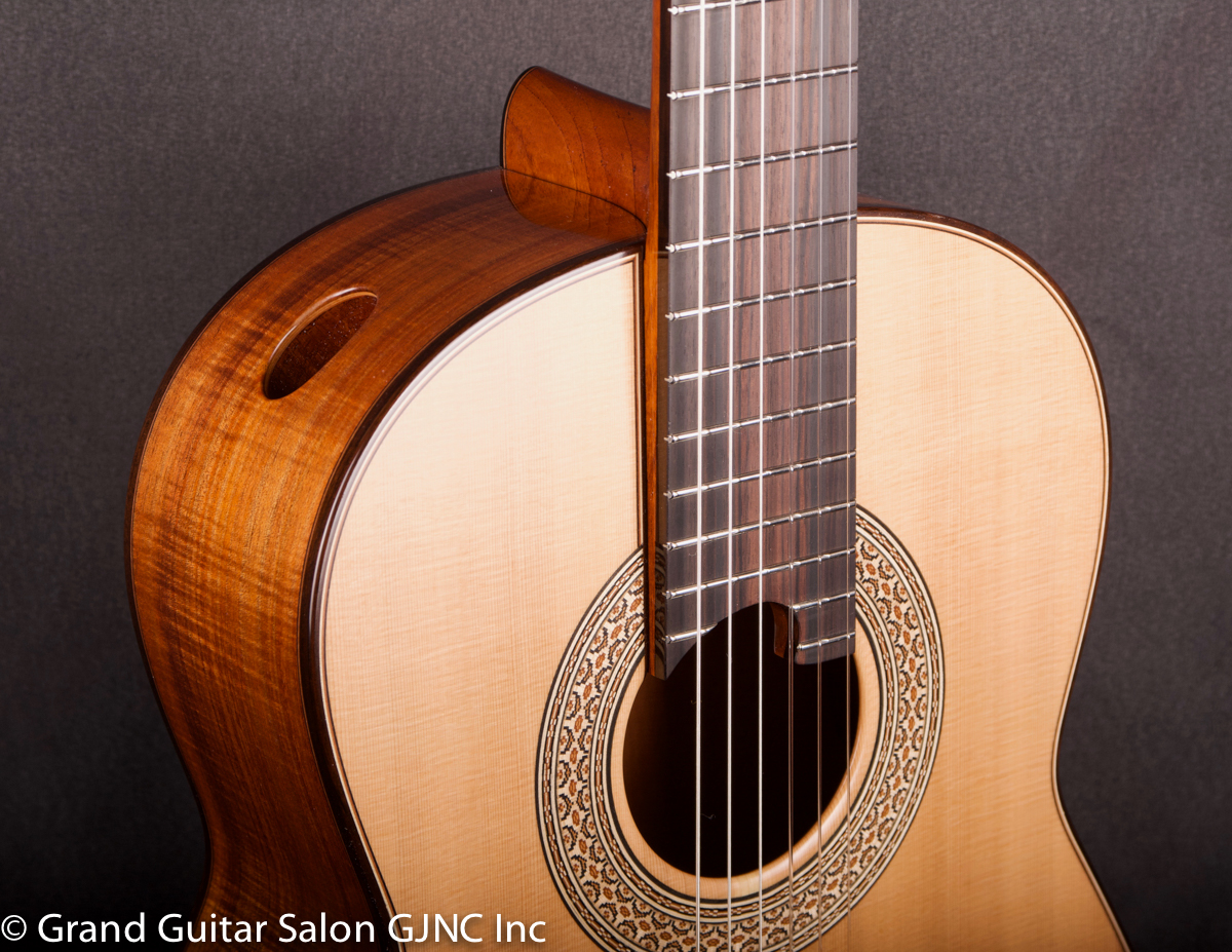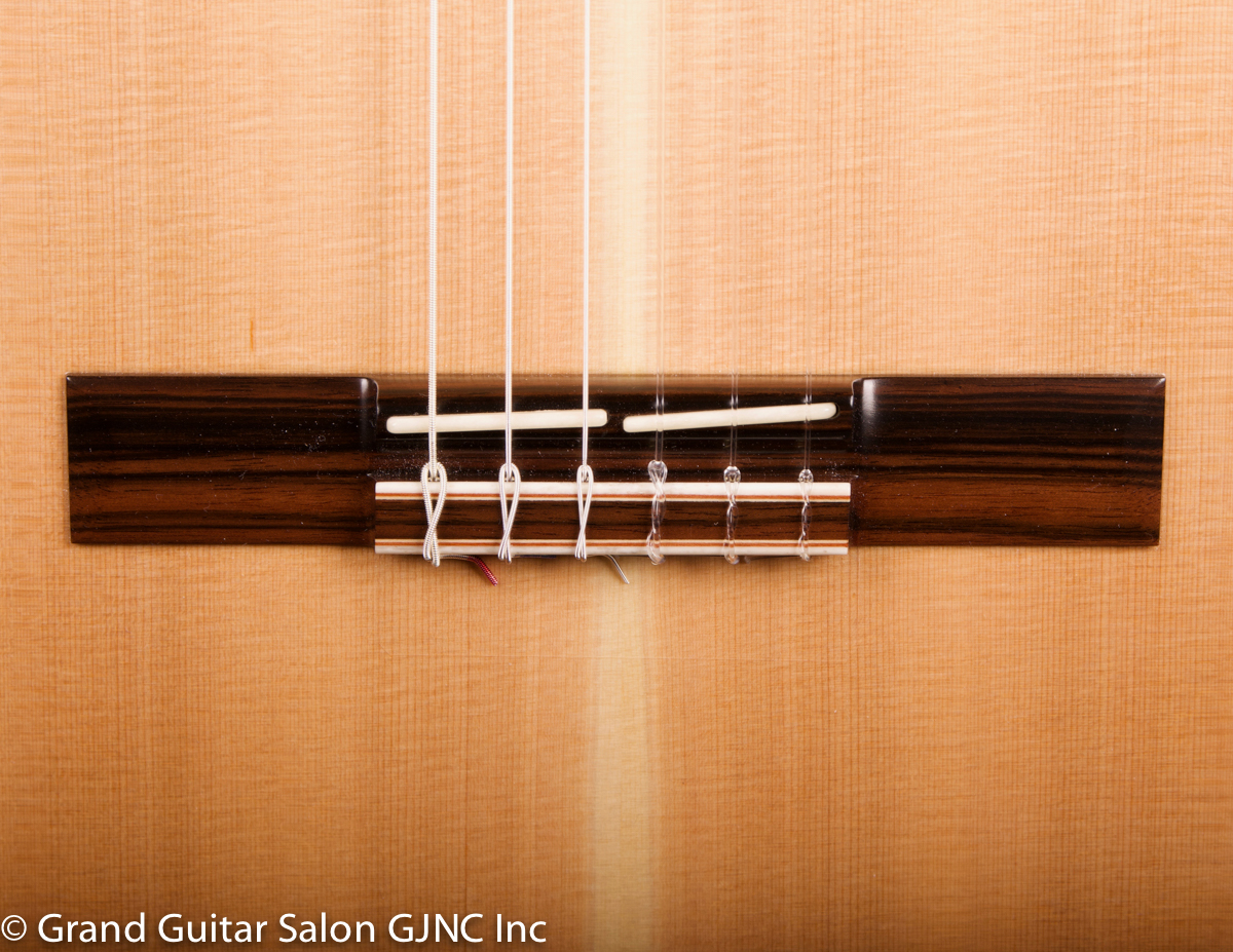The lightweight soundboard with asymmetrical spruce braces delivers a quick attack/ response and evenness of support across the guitar’s range with high structural integrity.