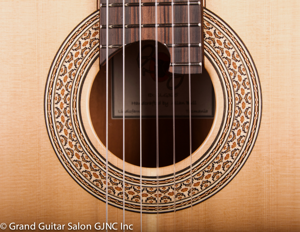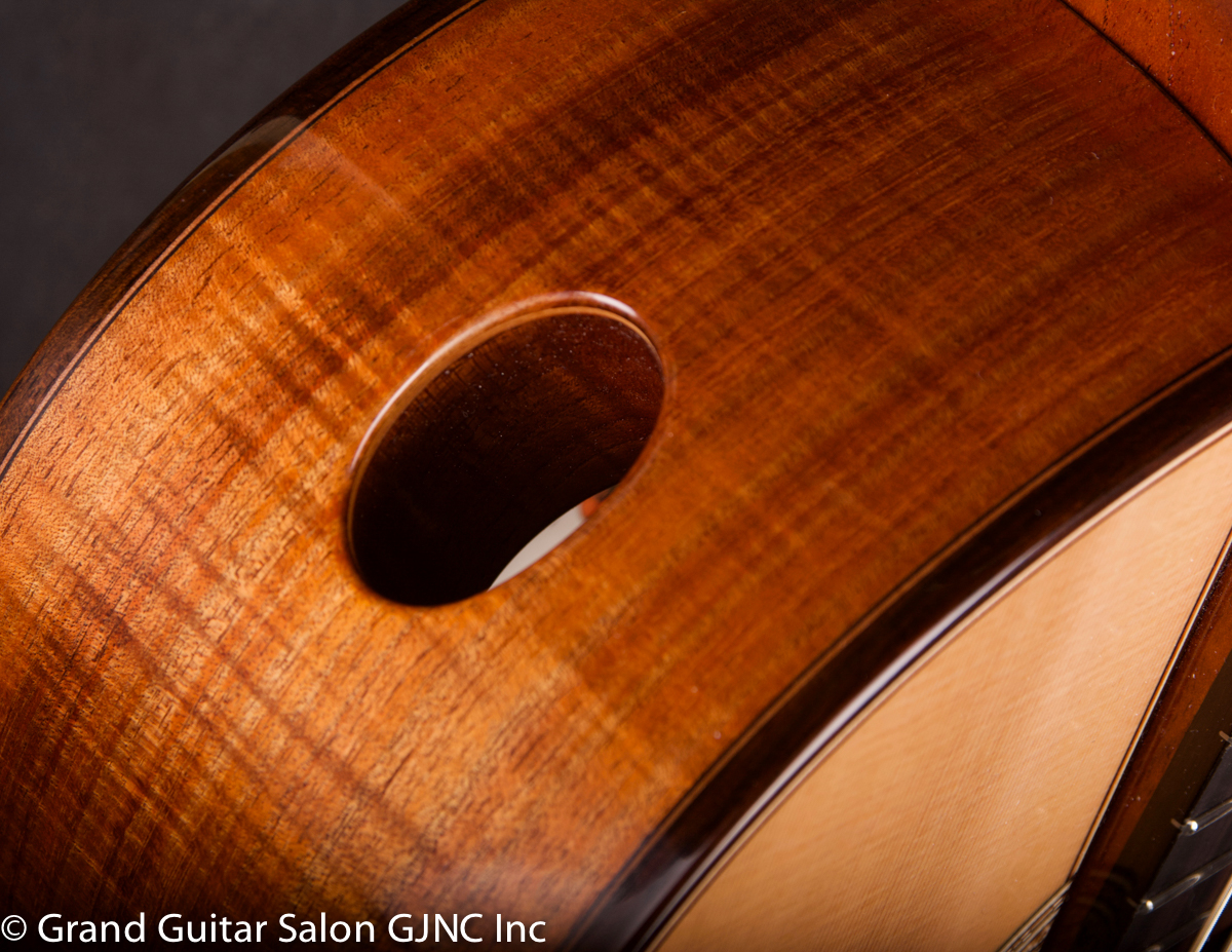 The guitar is fitted with a sound port which gives the player a more complete idea of the forward sound of the guitar somewhat like a small foldback speaker. The port is fitted with a tornavoz to lower the air cavity resonant frequency & increase lower range support.